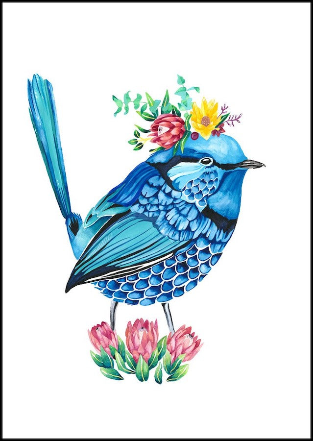 Isla is a Splendid Fairy Wren who seems to have nicked one of the boy’s stunning blue plumages and claimed it as her own. Sassy girl. Isla loves showing off these gorgeous blue and turquoise colours, whilst flaunting some natives and pattern.